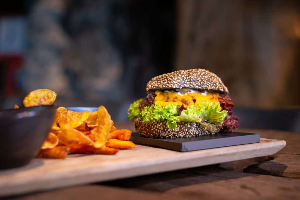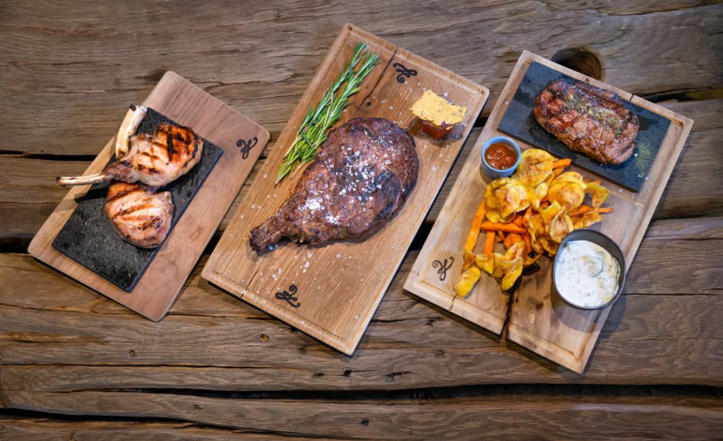 Tasty treats in Leogang: in the restaurant with an open kitchen, you can order crisp salads, fine steaks, delicious burgers from the lava stone grill and tarte flambee from 6pm to 10pm.