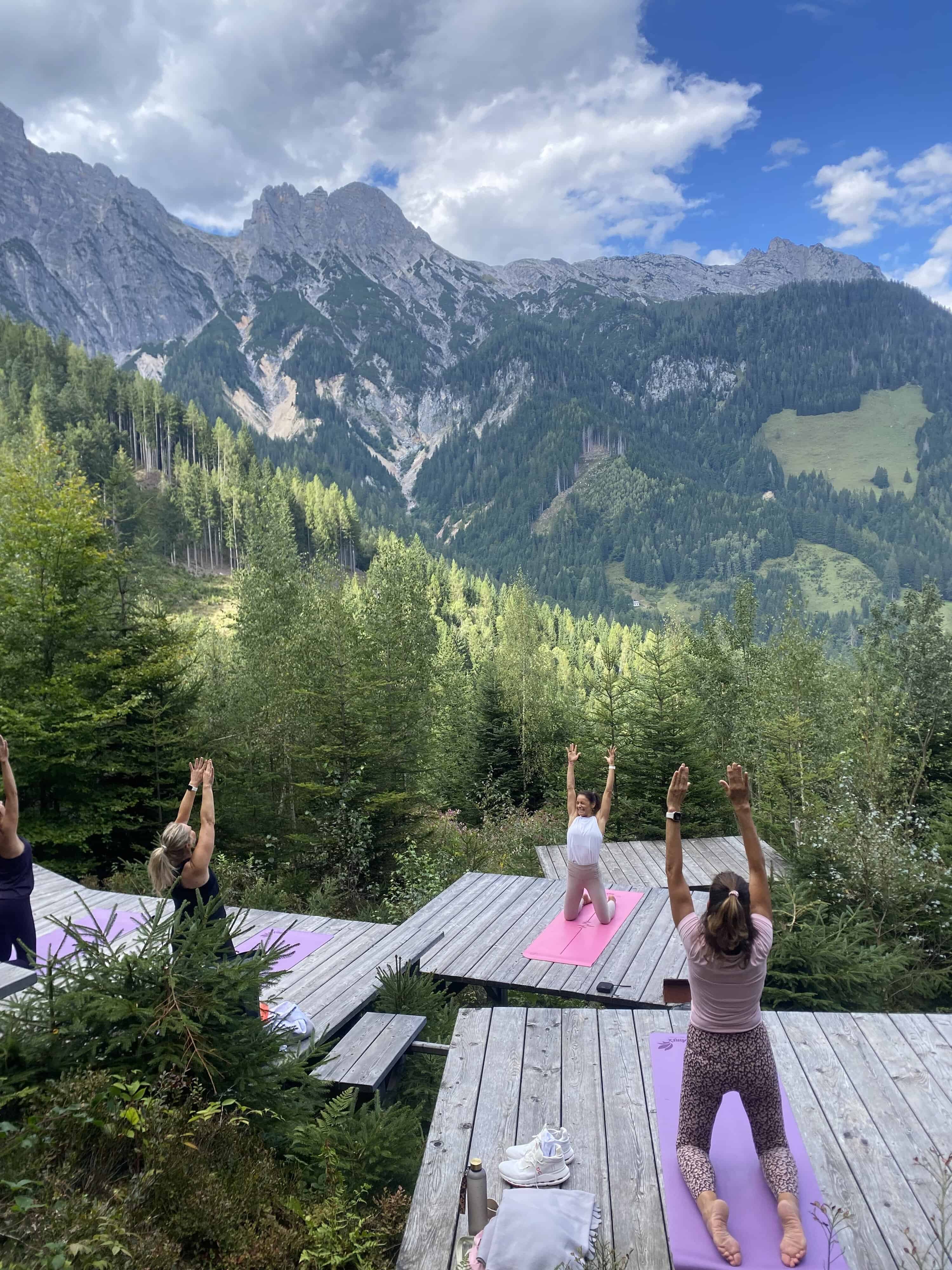 Yoga mit Ausblick – über den Dächern von Leogang.
