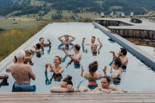 Zur vollkommenen Regeneration steht uns die Sauna-Schwimm-Wellness-Landschaft zur Verfügung, während wir uns kulinarisch von der modernen österreichischen Küche verwöhnen lassen.